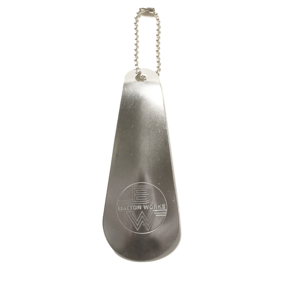 Button Worksのシューホーンです。 1930〜1940年代のシューズメーカーがノベルティとして作っていたものを基に復刻。 真鍮製の分厚く重いものではなく、鉄製なので薄くても丈夫です。 シルバーはクリアー塗装なので使っているとすぐに味が出てきます。 ブラックは当時から錆止めとして塗装されていたものを忠実に復刻。 ブラスはメッキの為、錆びにくいですが真鍮独特の味が出てきます。 Size :H 105mm × W 40mm Material : Iron Color